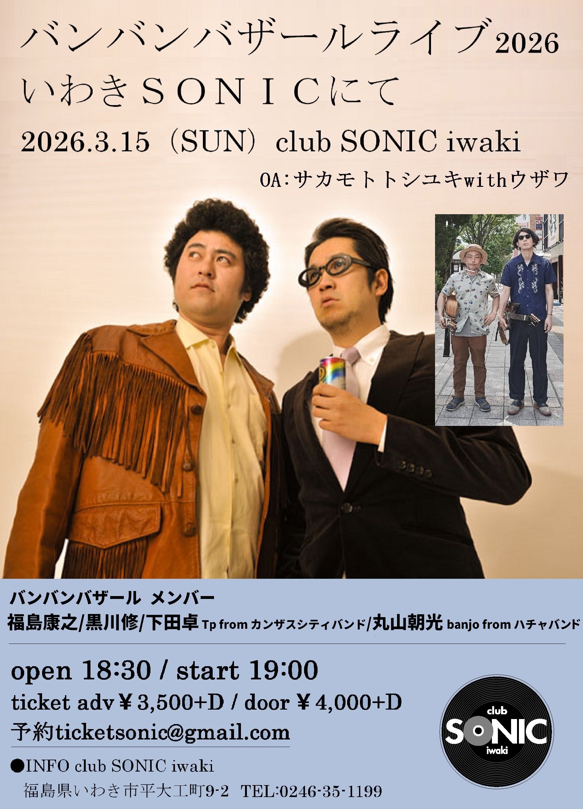 ●INFO club SONIC iwaki 〒970-8026 福島県いわき市平大工町9-2 MAIL:sonic-iwaki@sonic-project.com TEL/FAX:0246-35-1199 |